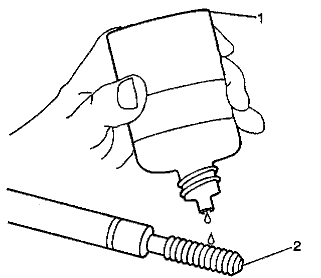 19. Lubricate the threads of the installer tool (2) with the driver oil (1).