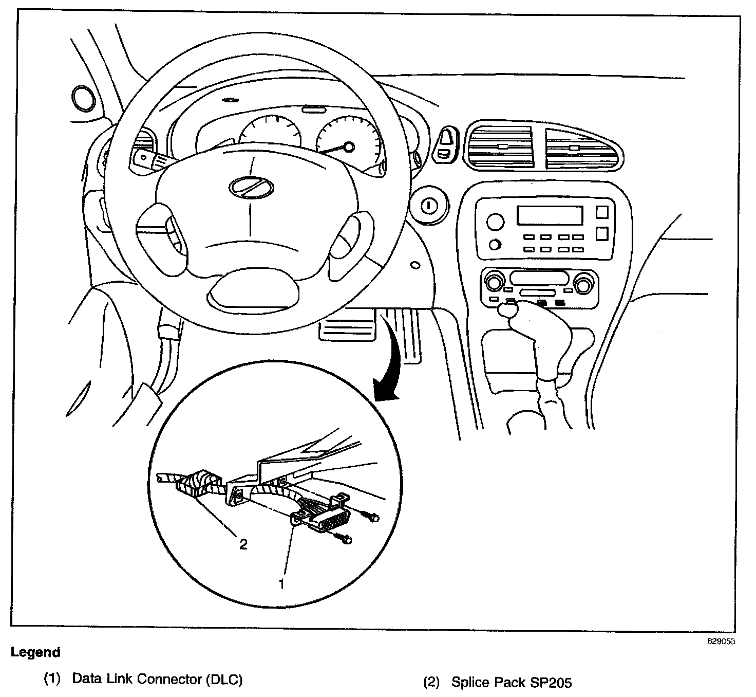 Below the IP, taped in the harness, approximately 10 cm (4 in) from the data link connector (DLC) breakout