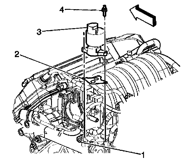 3. Install the EGR valve bracket to the mounting studs (4) using the 2 nuts.