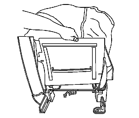 9. Install the seat back cover and pad. Refer to Driver or Passenger Seat Back Cushion Cover and Pad Replacement (Driver or Passenger Seat Back Cushion Cover and Pad Replacement).