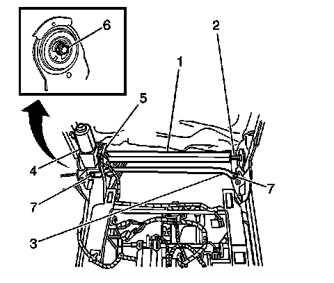 3. Slide the recliner rod (2) through the power seat back recliner motor (4) and the recliner assembly.