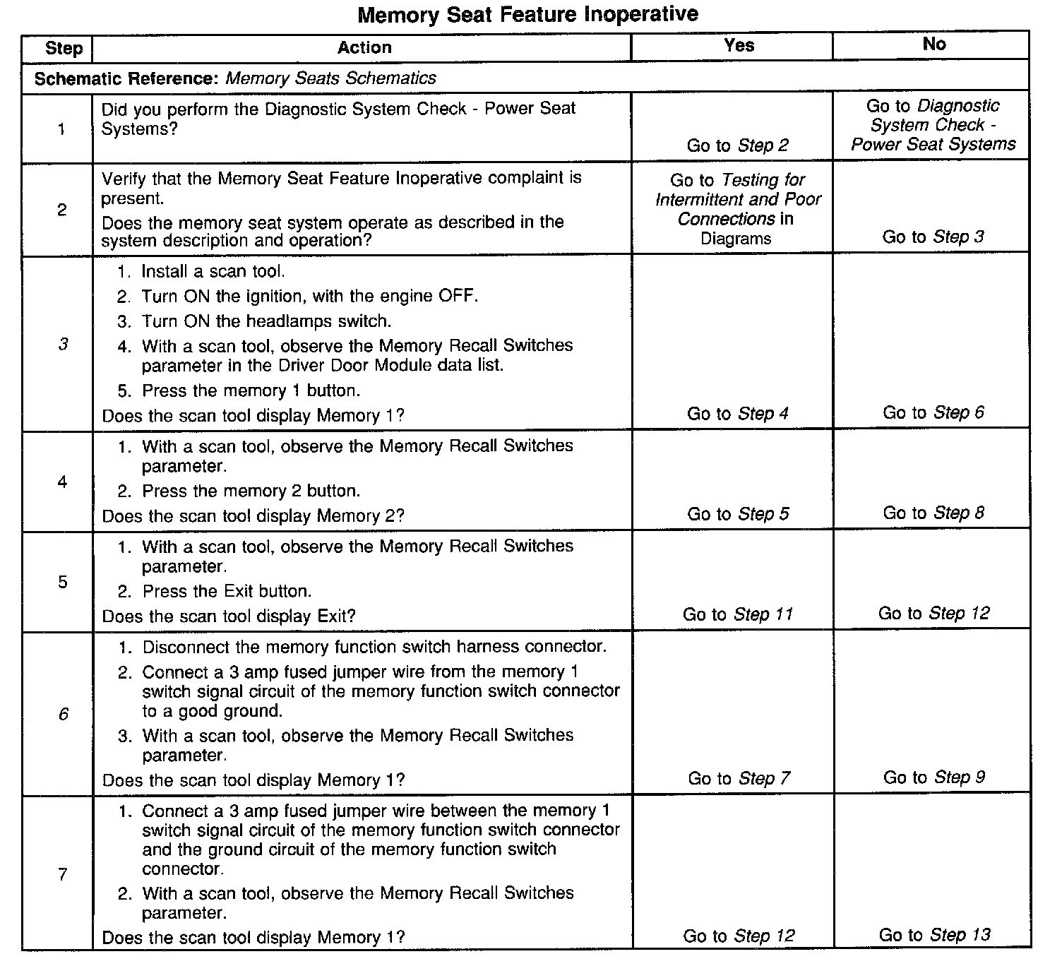The number(s) below refer to the step number(s) on the diagnostic table.