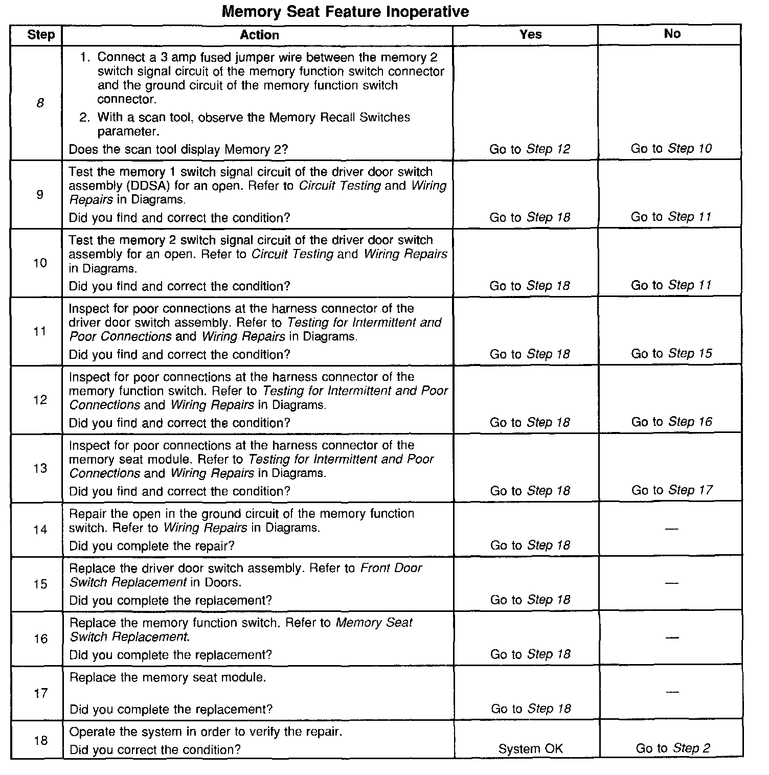 Memory Seat Feature Inoperative