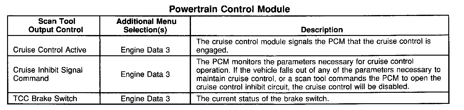Scan Tool Data List - Powertrain Control Module (PCM)