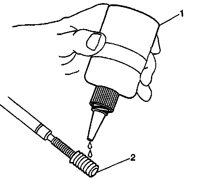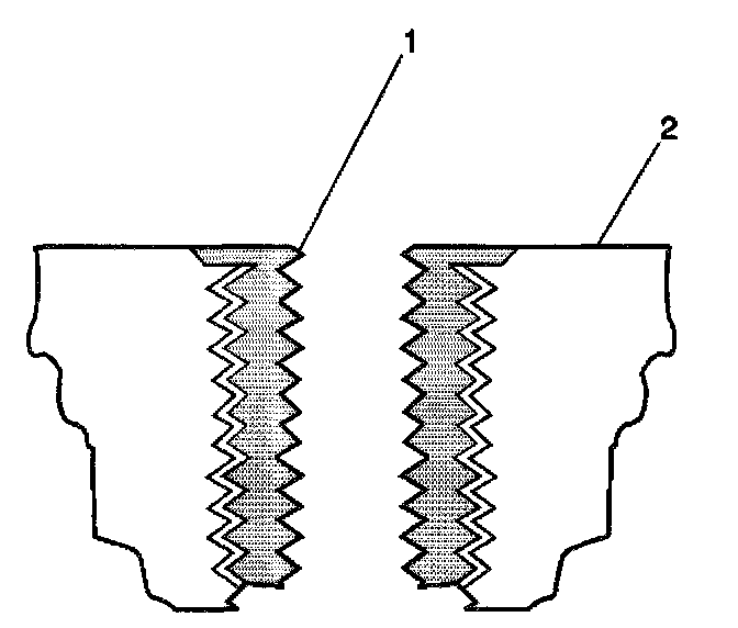 11. Apply threadlock sealant GM P/N 12345493, J 42385-109, LOCTITE 277 or equivalent (1) to the insert OD threads (2).