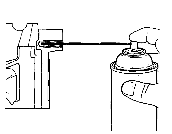 7. Spray cleaner GM P/N 12346139, P/N 12377981 or equivalent into the tapped hole.