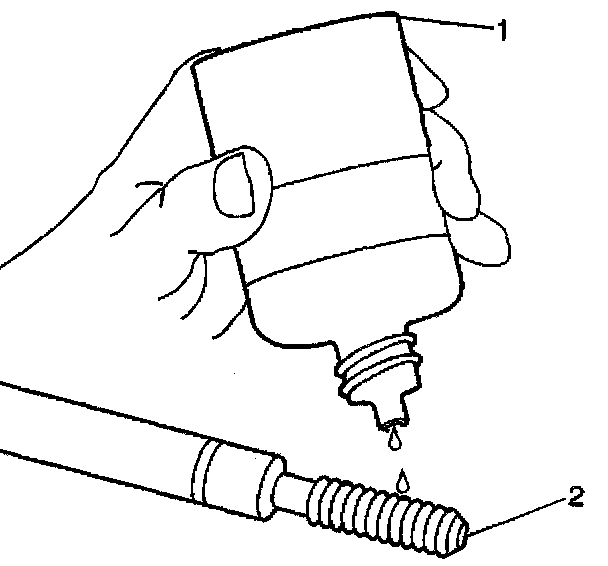 9. Lubricate the threads of the driver installation tool (2) with the driver oil (1) J 42385-110.