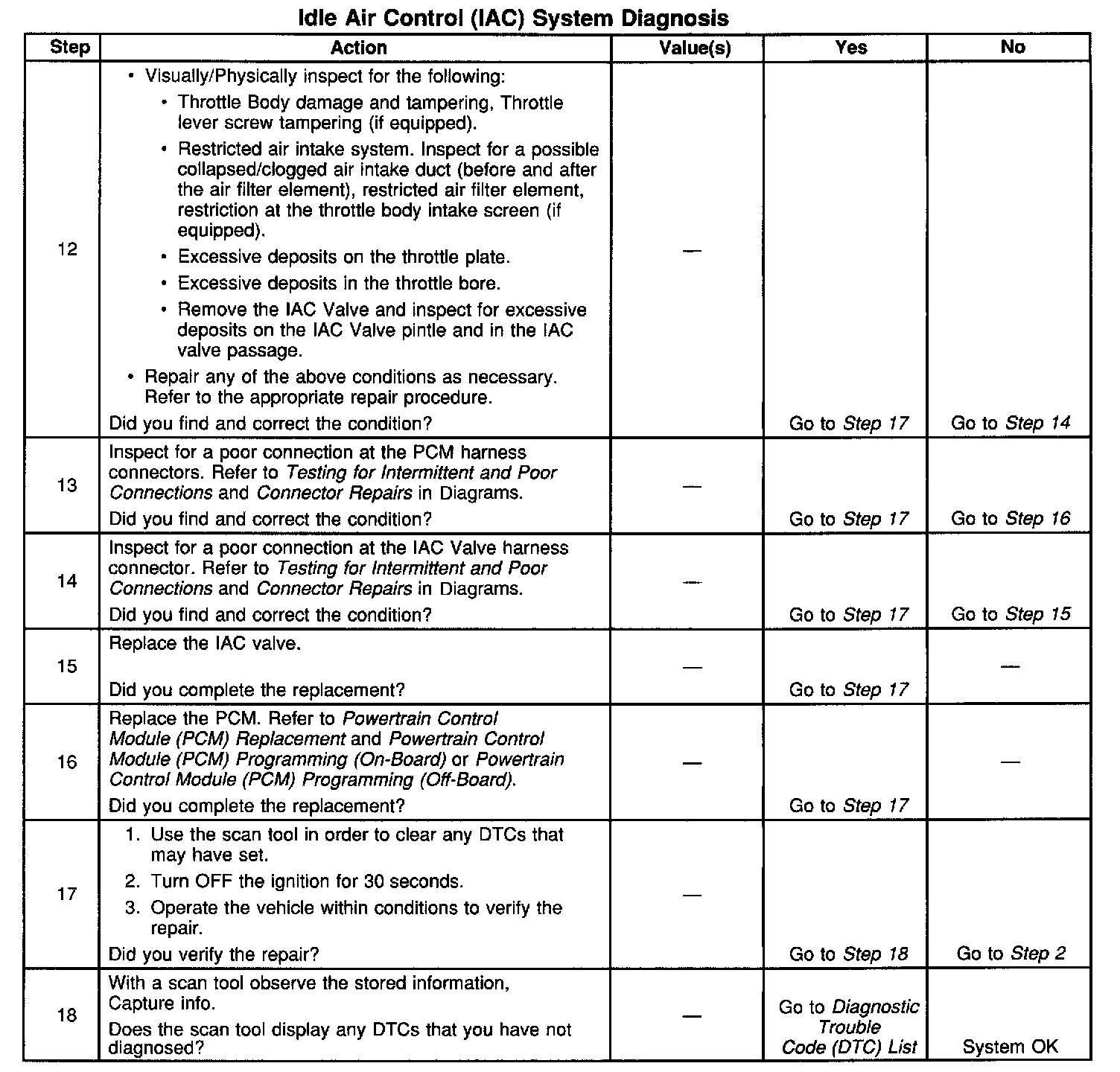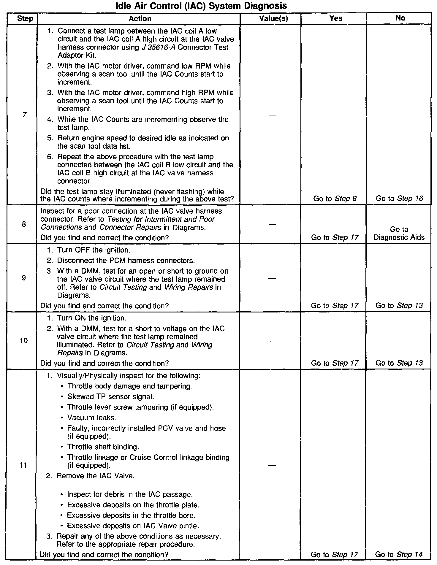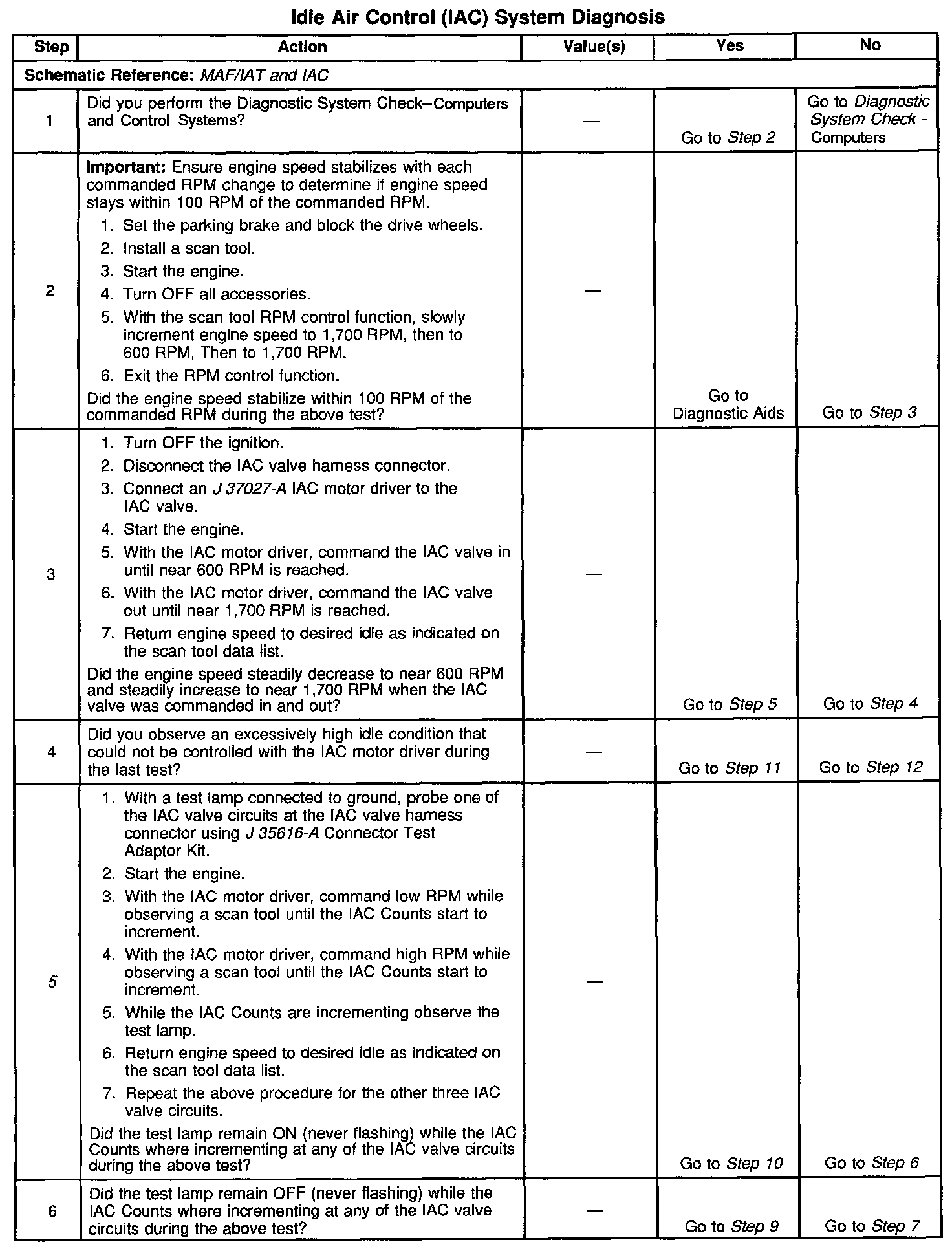 ^ A low or unstable idle condition could be caused by a non-IAC system problem that can not be overcome by the IAC valve. Refer to Symptoms - Computers and Control Systems. Symptom Related Diagnostic Procedures