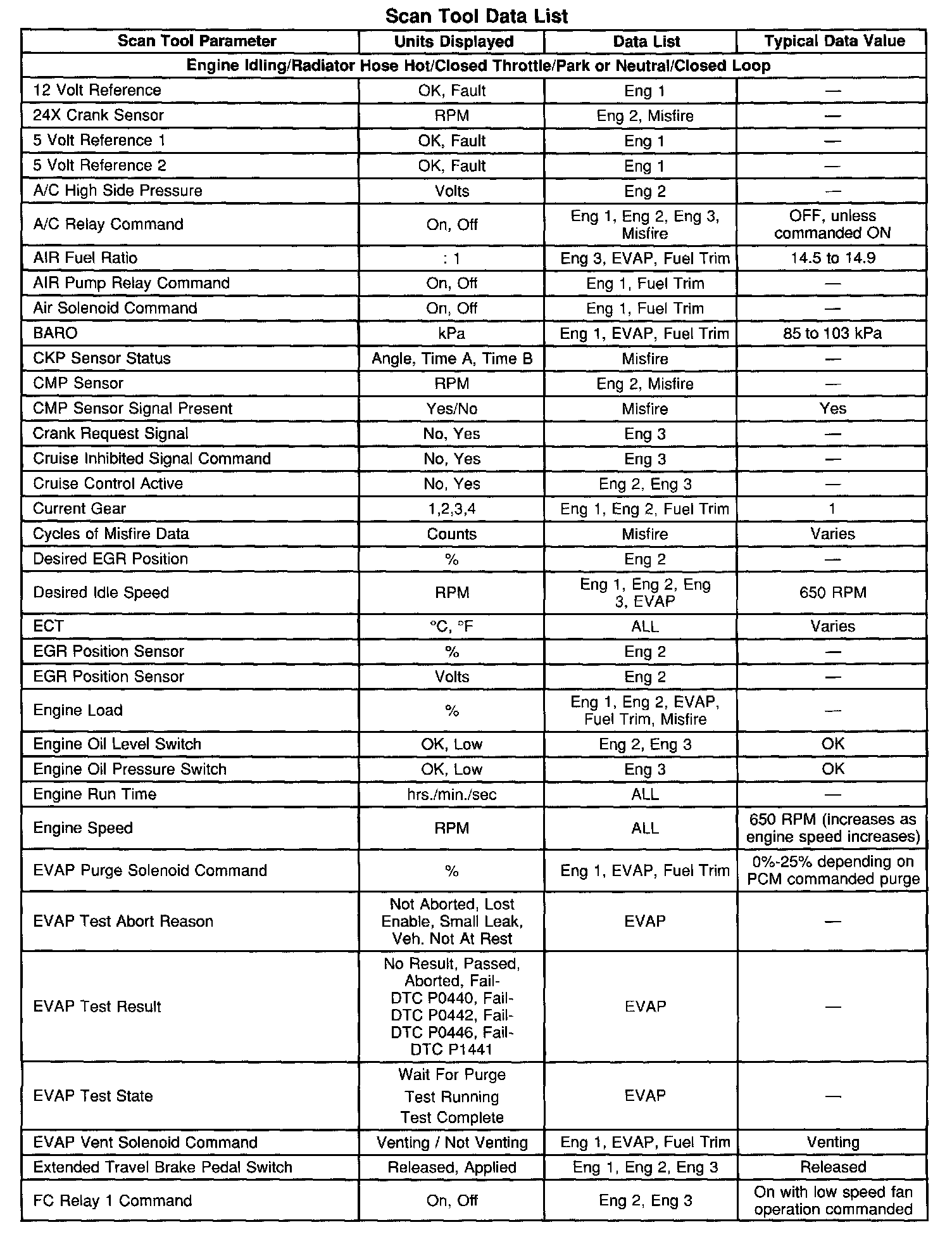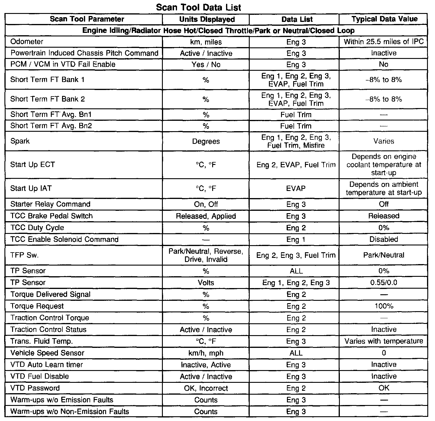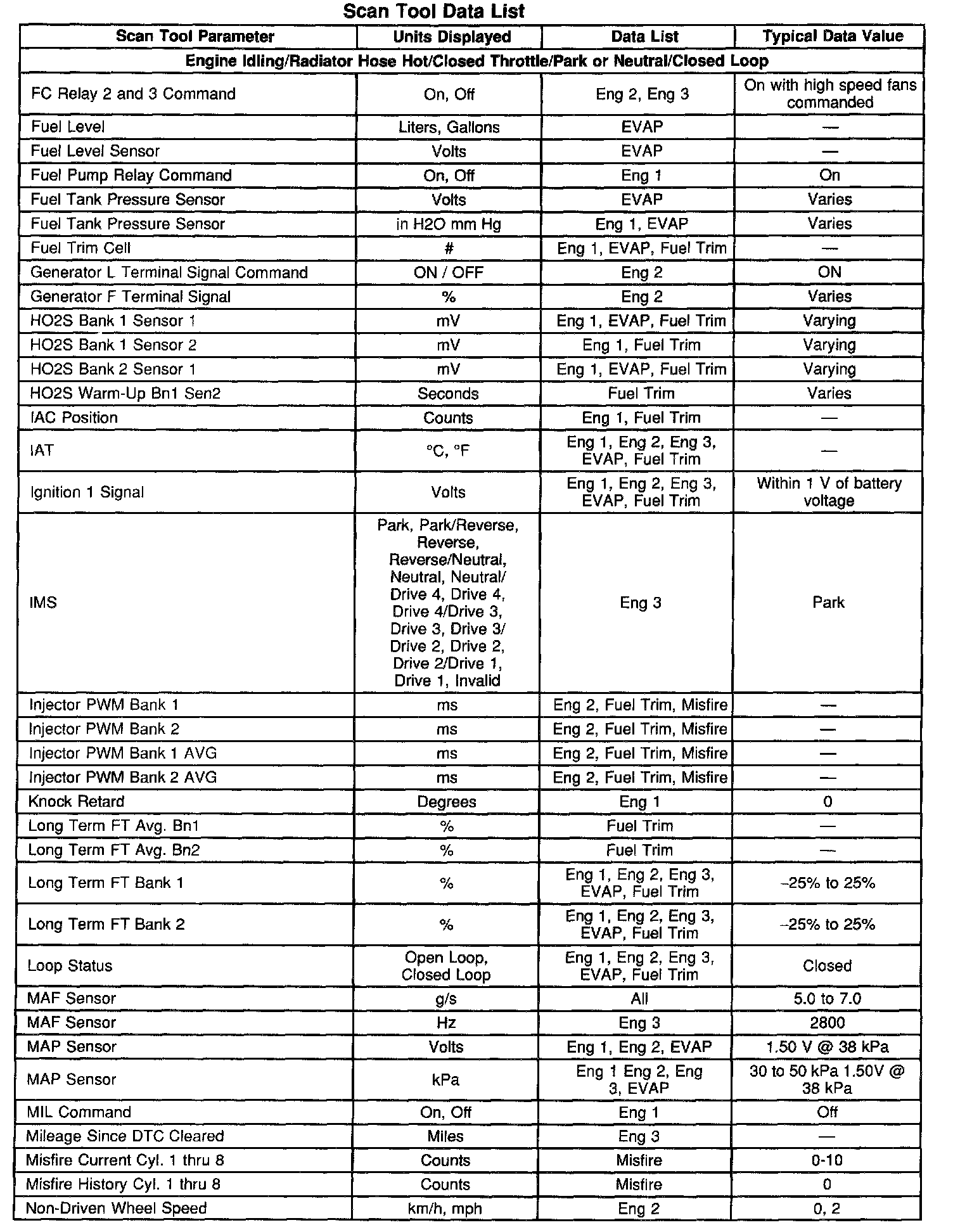 Scan Tool Data, Normal Values and Definitions