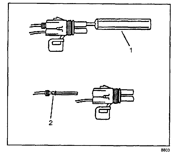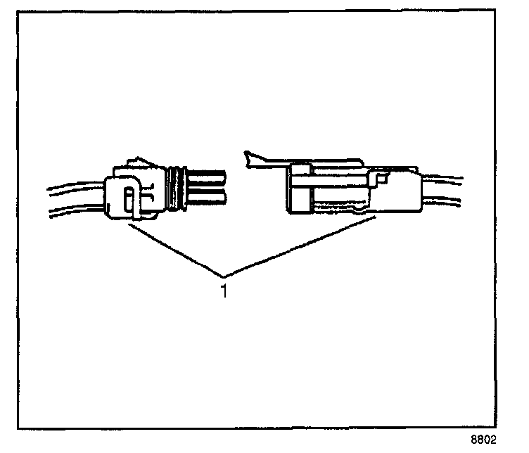 The following is the proper procedure for the repair of Weather Pack(R) Connectors.1. Separate the connector halves (1).