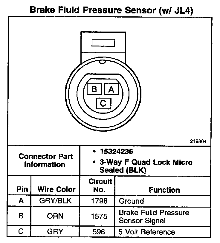 Brake Fluid Pressure Sensor (W/ JL4):