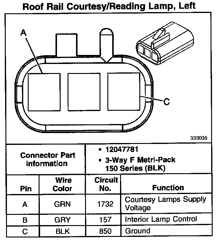 Roof Rail Courtesy/Reading Lamp, Left: