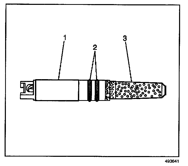 ^ Inlet filter (3) damaged or plugged with fine gritty material; replace tube.