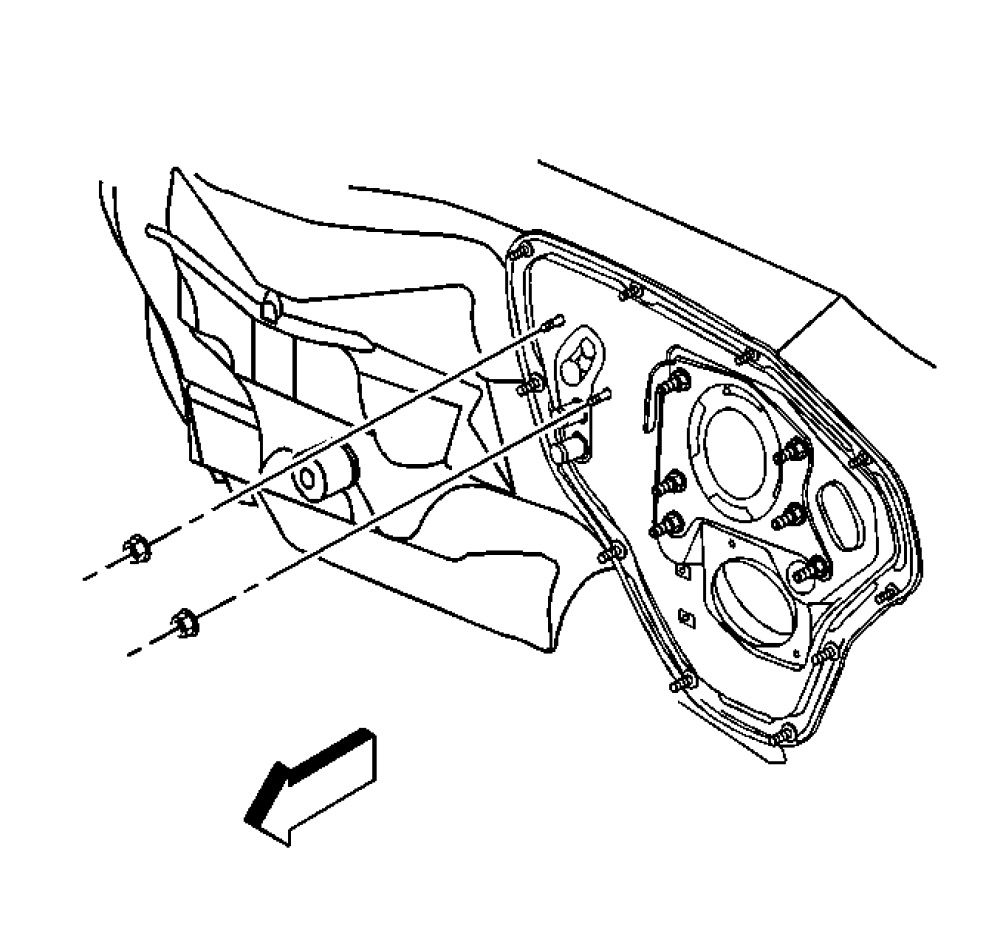 3. Remove the left sheet metal diagonal brace. Refer to Front End Sheet Metal Diagonal Brace Replacement Service and Repair.