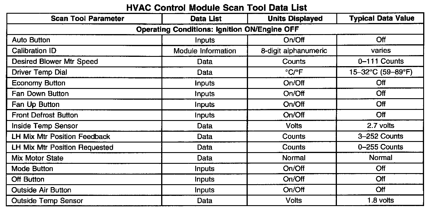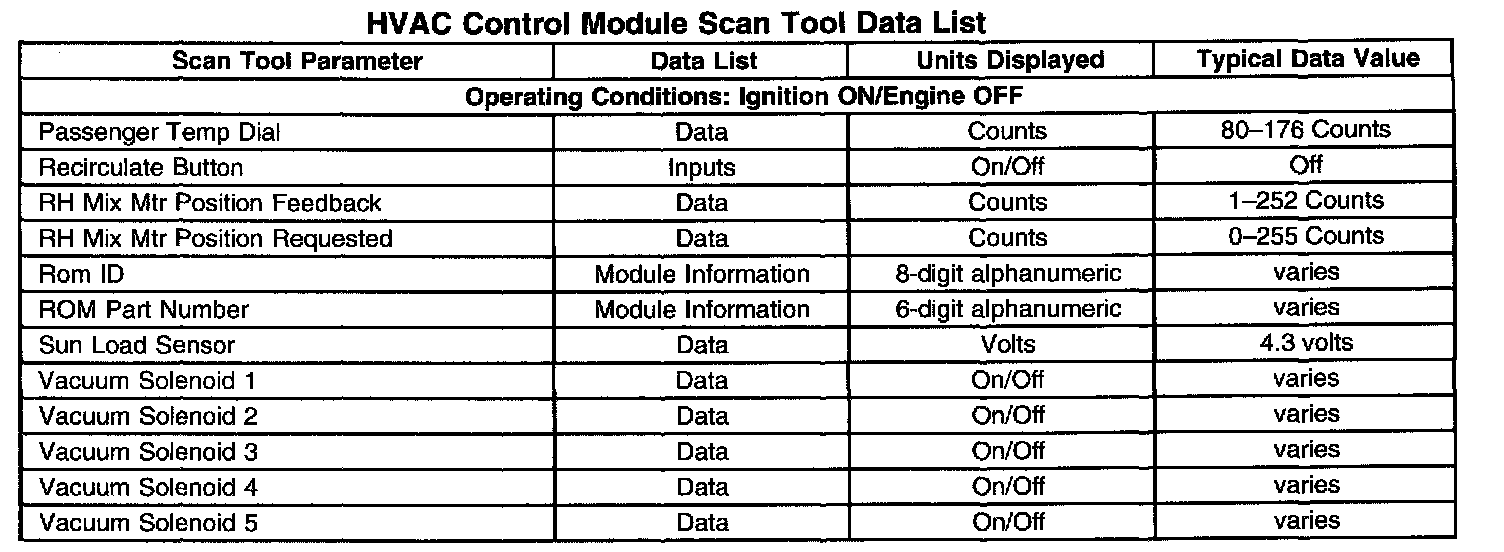 HVAC Control Module Scan Tool Data List (Part 1 Of 2):