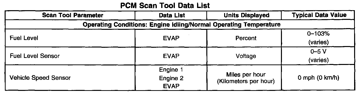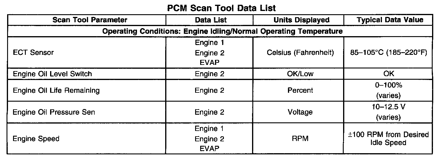 Scan Tool Data List - Powertrain Control Module (PCM)