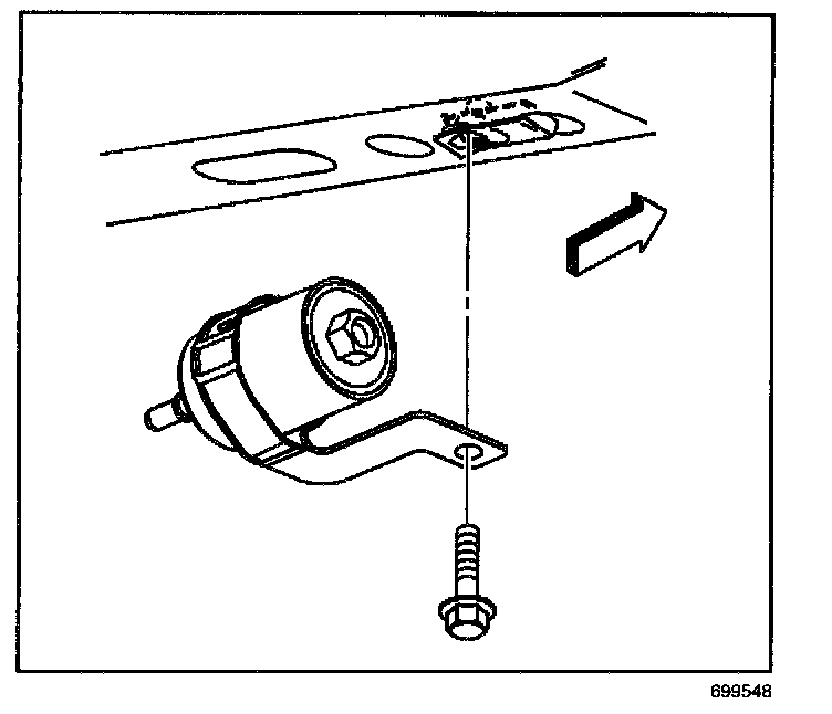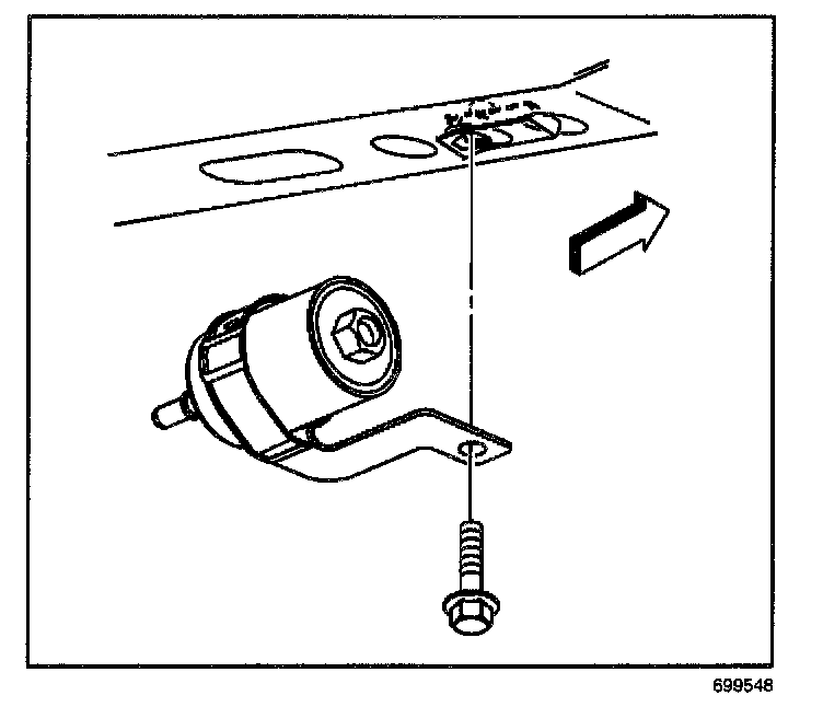 4. Install the in-pipe fuel filter mounting bracket retaining bolt.