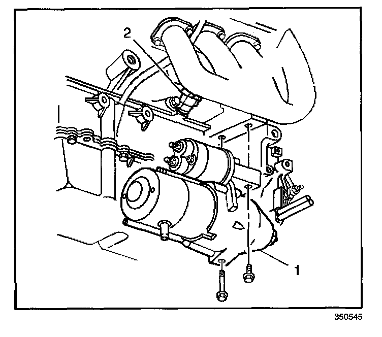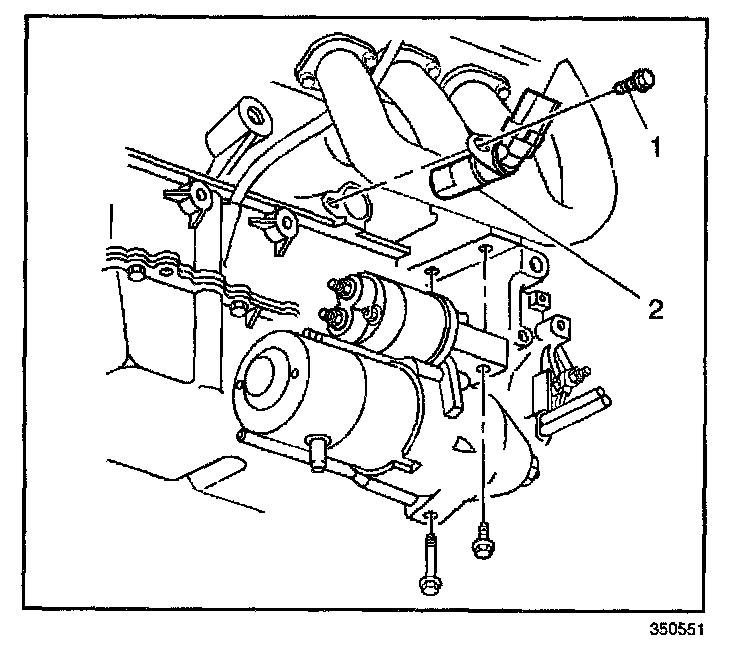 2. Re-install or tighten the starter motor (1) as necessary. Refer to Starter Motor Replacement in Starting and Charging.