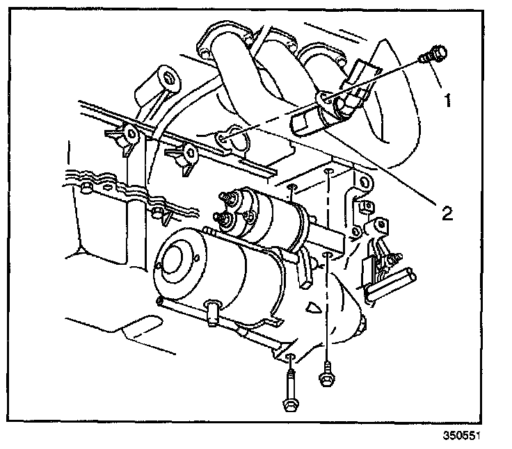 3. Loosen or remove the starter motor (1) as necessary.
