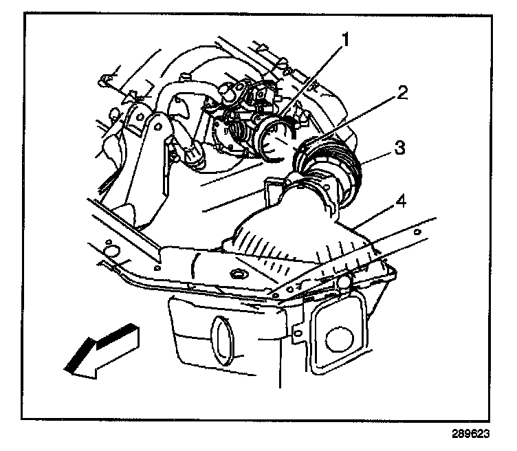 3. Loosen the band clamp (2) at the throttle body (1), and disconnect the air duct (3) from the throttle body.