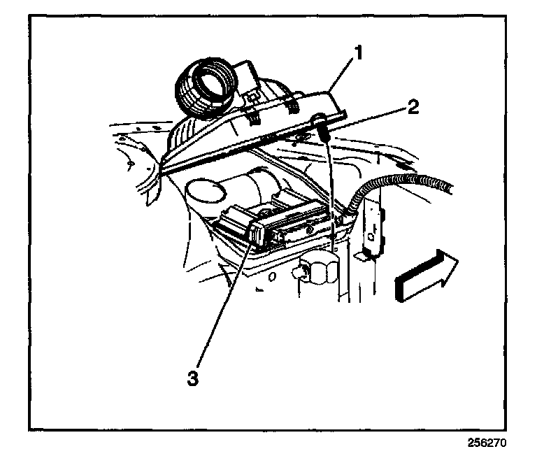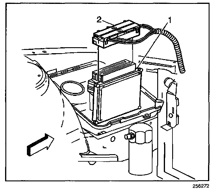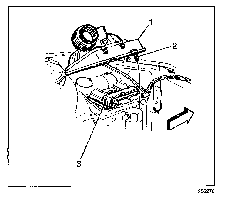 6. Remove the air cleaner cover (1) and lift the PCM (3) from the housing assembly.