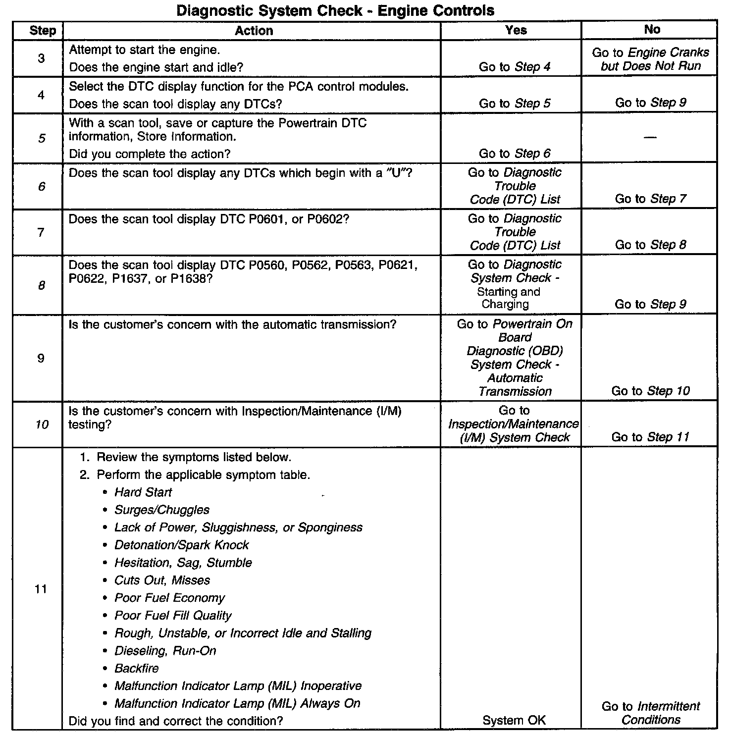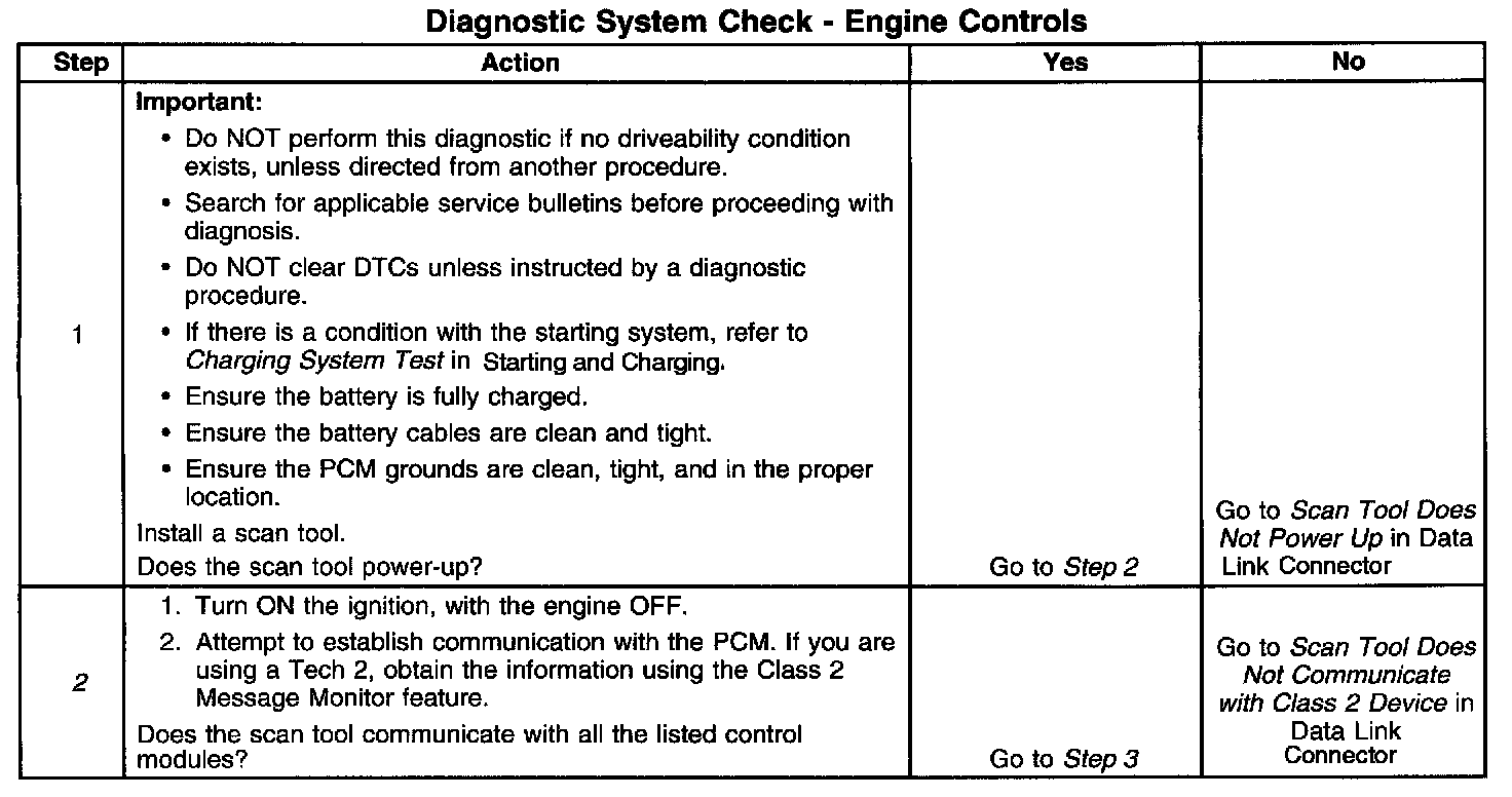 DESCRIPTIONThe Diagnostic System Check is an organized approach to identifying a condition that is created by a malfunction in the powertrain control system. The Diagnostic System Check must be the starting point for any driveability concern. The Diagnostic System Check directs the service technician to the next logical step in order to diagnose the concern. Understanding and correctly using the diagnostic table reduces diagnostic time, and prevents the replacement of good parts.