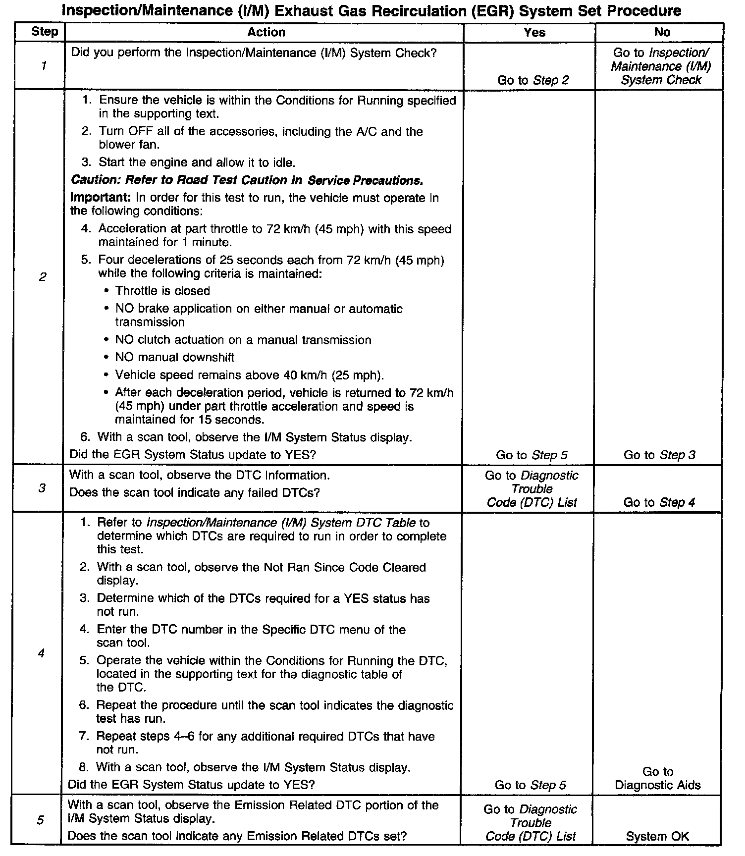 I/M EGR System Set Procedure
