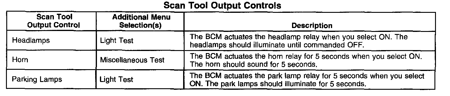 Scan Tool Output Controls: