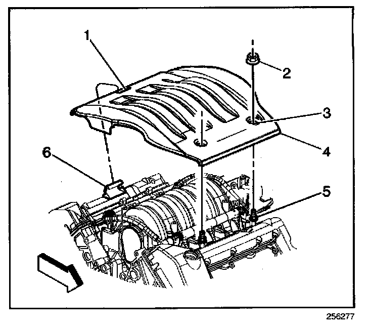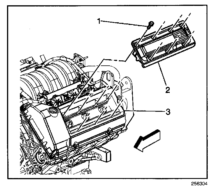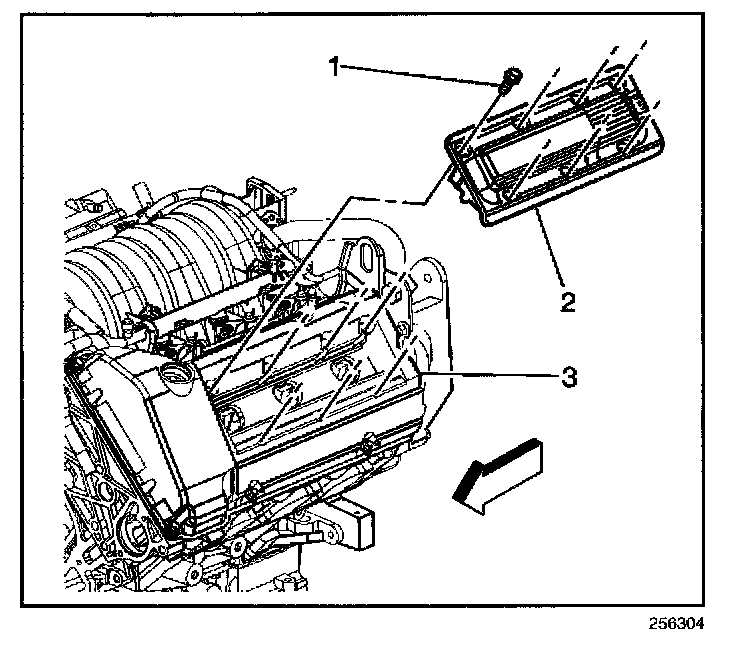 5. Gently pry the cassette (2) away from the cam cover (3) using a screwdriver. Protect finished surfaces from scratches with a shop cloth. Pry a small amount in several locations around the edge of the cassette in order to lift the assembly as evenly as possible.