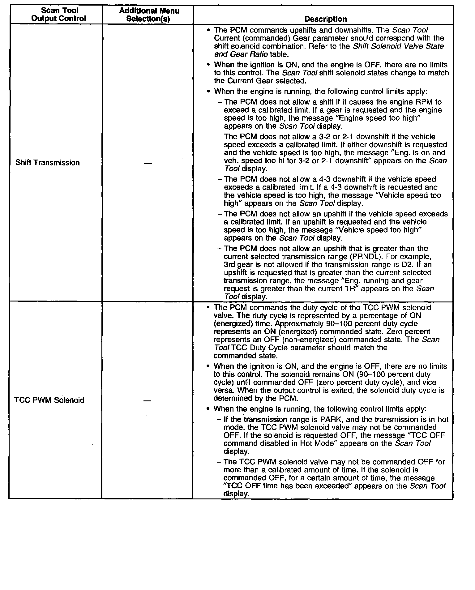 Scan Tool Output Controls