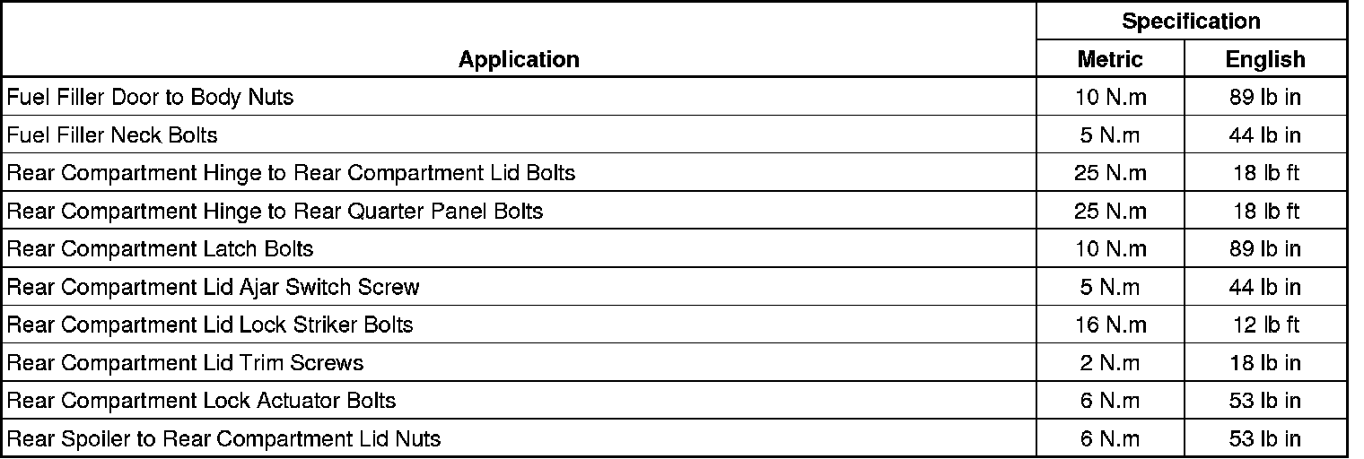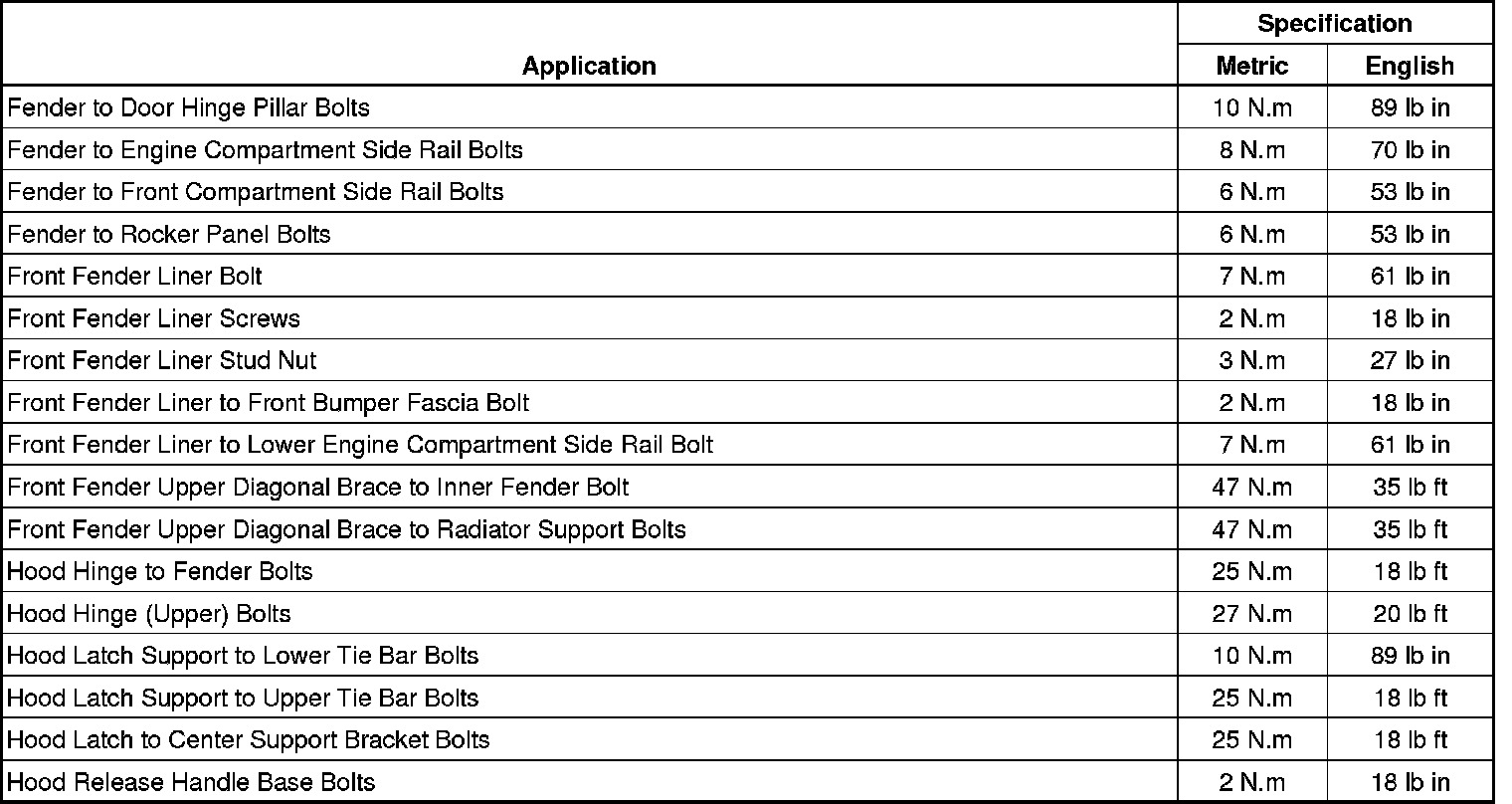 Fastener Tightening Specifications