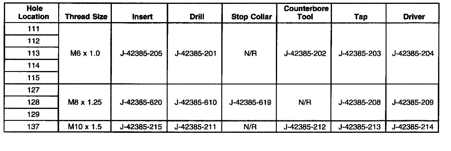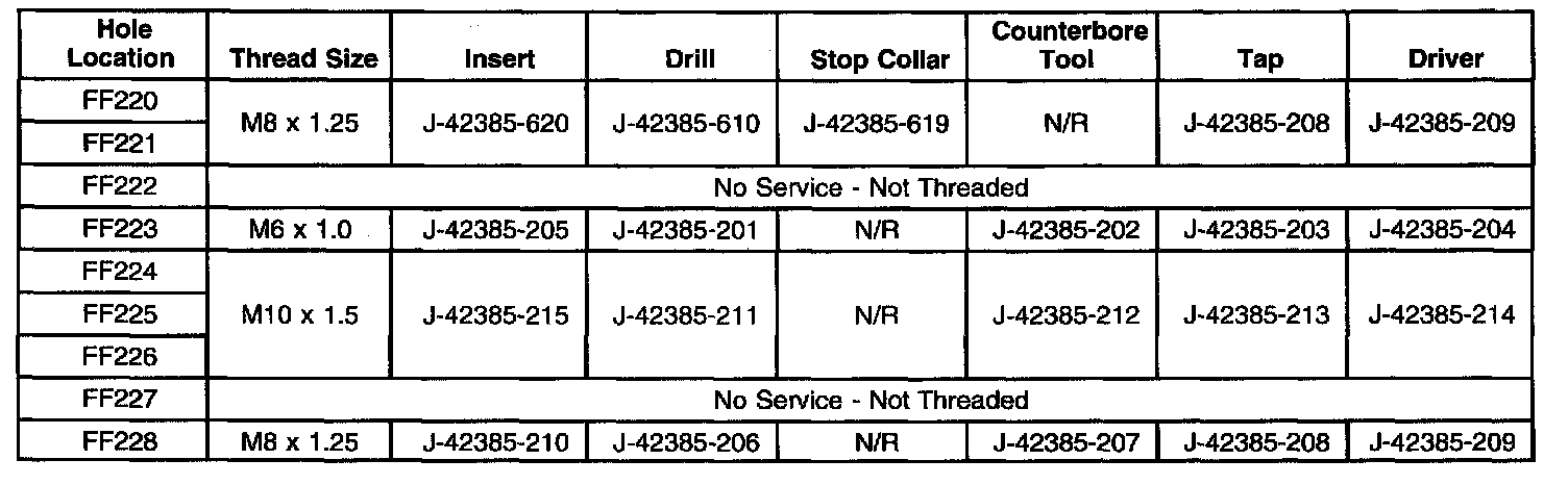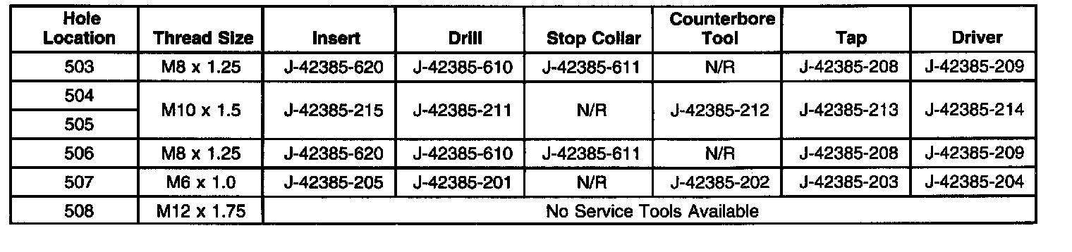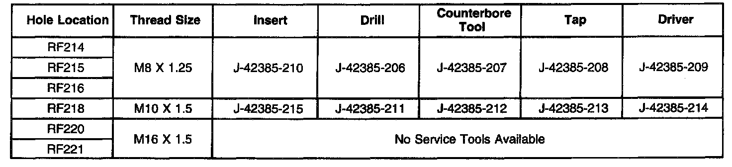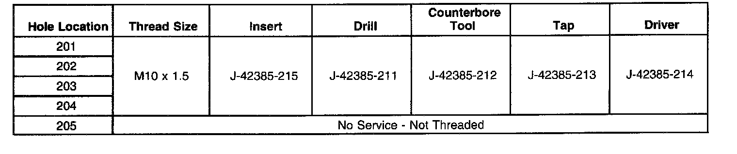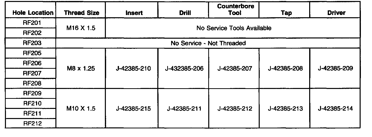 Thread Repair SpecificationsCylinder Block - Front Face