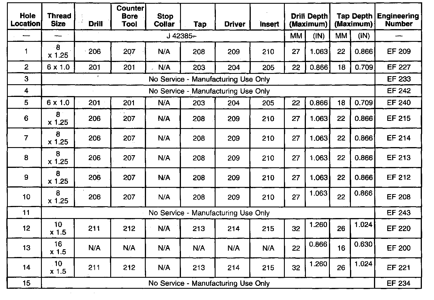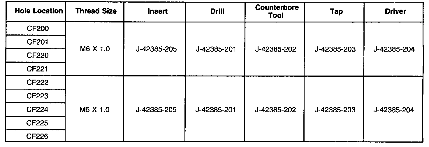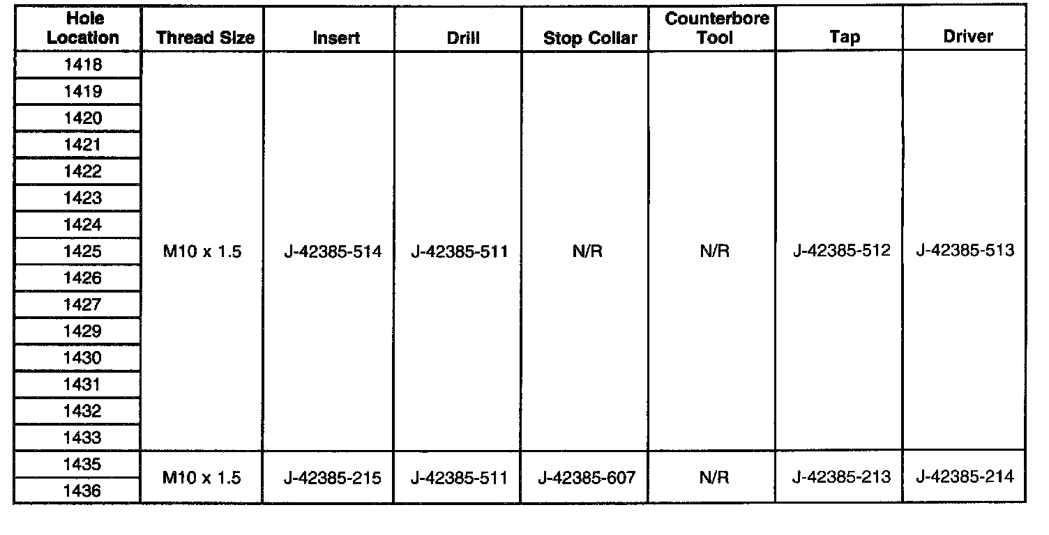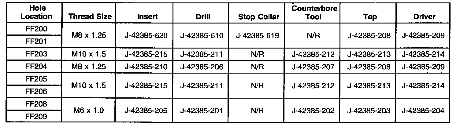 Thread Repair SpecificationsCylinder Block - Front Face