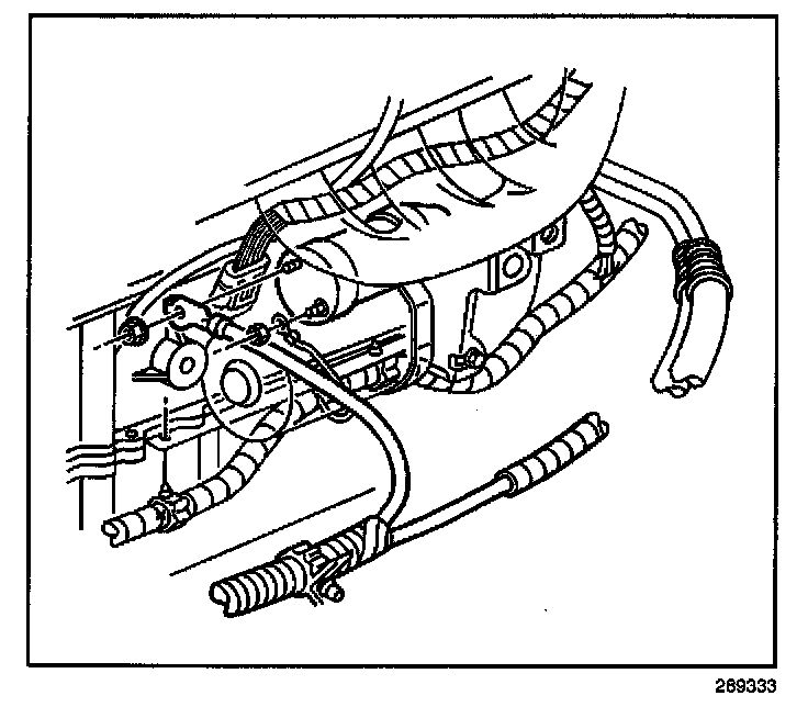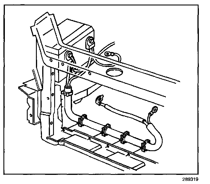 8. Remove the battery cable retainers from the engine frame.
