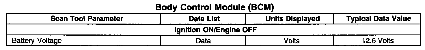 Scan Tool Data List - BCM