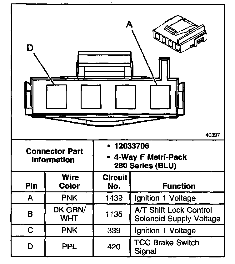 A/T Shift Lock Control Connector End Views