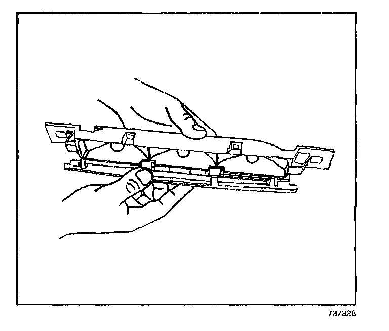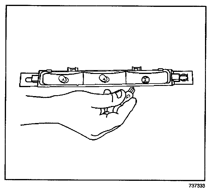 3. Depress the retainers on each end of the high mounted stop lamp housing.