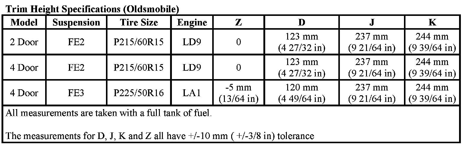Ride/Trim Height Specifications