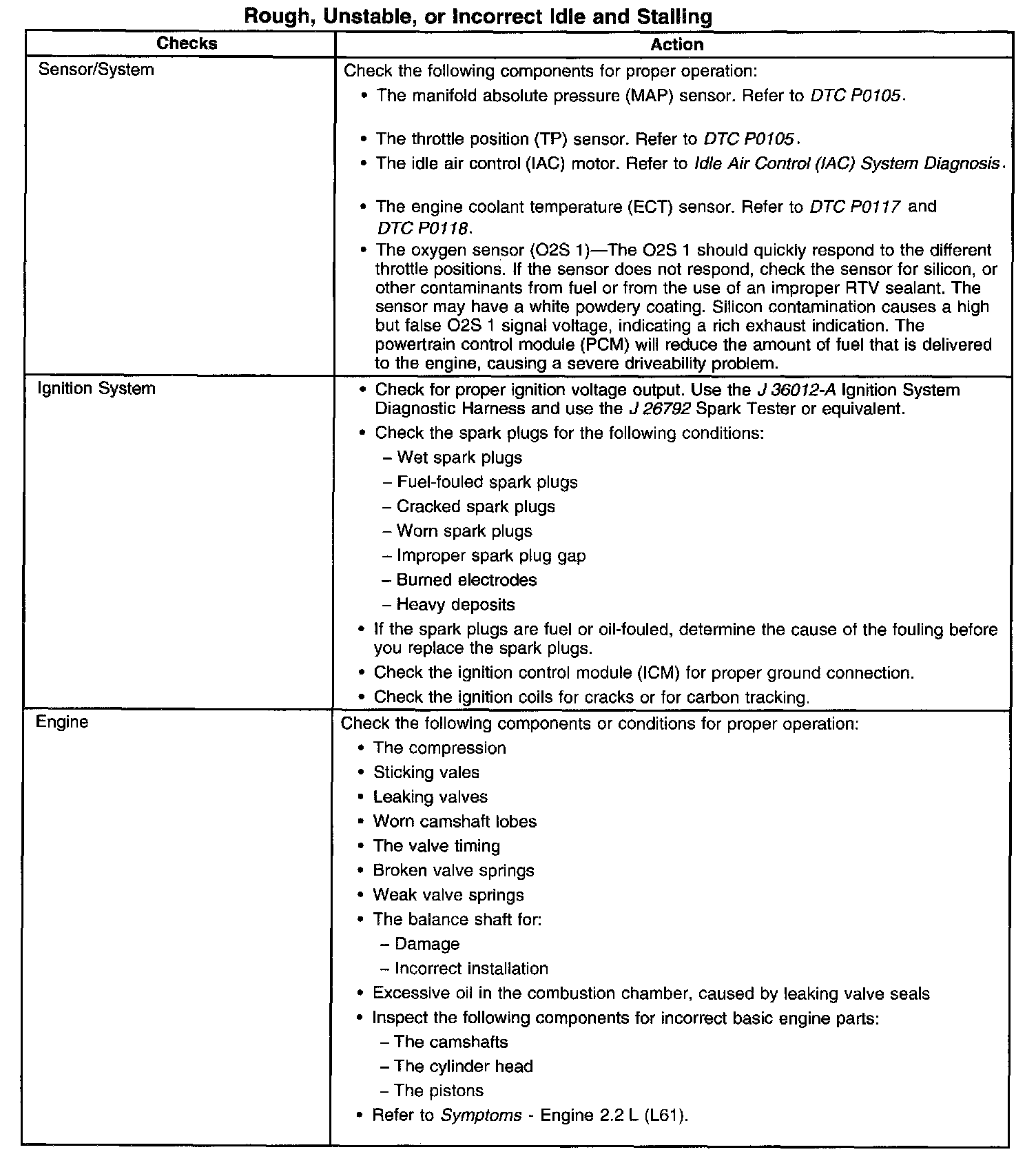 Rough, Unstable, or Incorrect Idle and Stalling