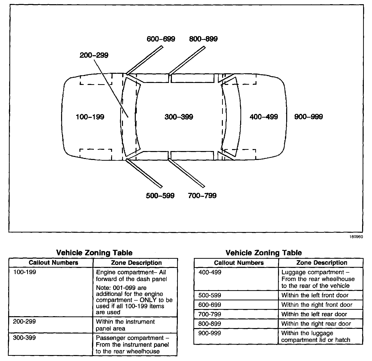 All grounds, in-line connectors, pass-through grommets, and splices have identifying numbers that correspond to where they are located in the vehicle. The following table explains the numbering system.