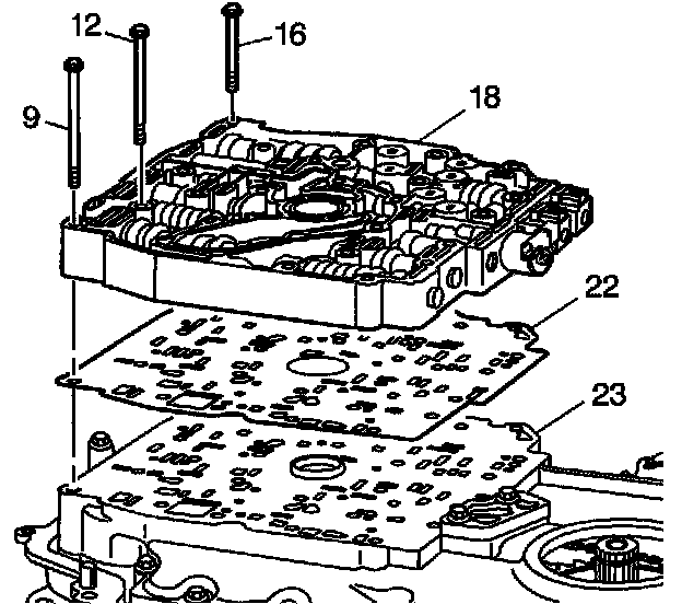 1. Install the control valve body to spacer plate gasket (22) onto the spacer plate (23).