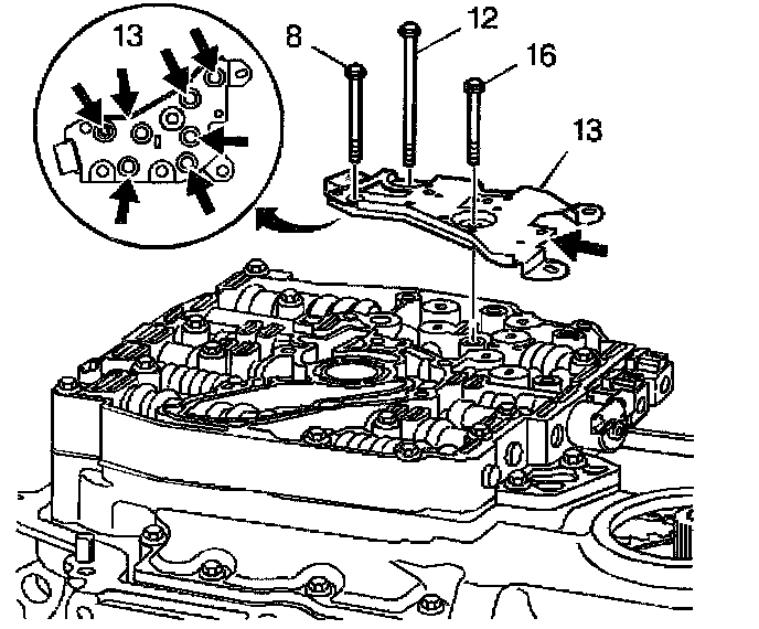5. Install the TFP switch assembly (13) onto the control valve body assembly.