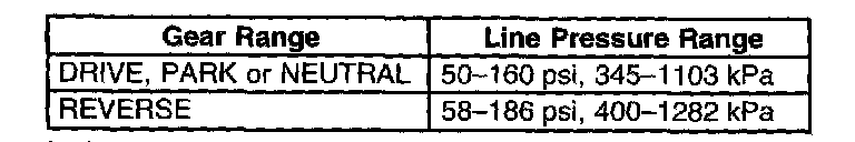 If your pressure readings differ greatly from the line pressure table, refer to the Diagnosis Tables.