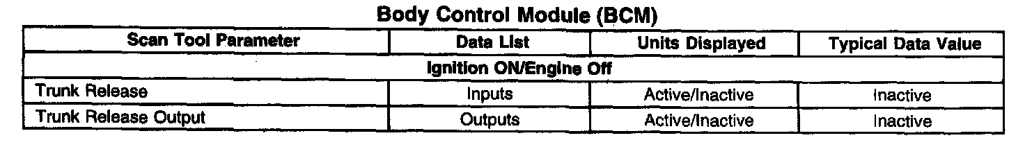 Scan Tool Data List - Body Control Module (BCM)