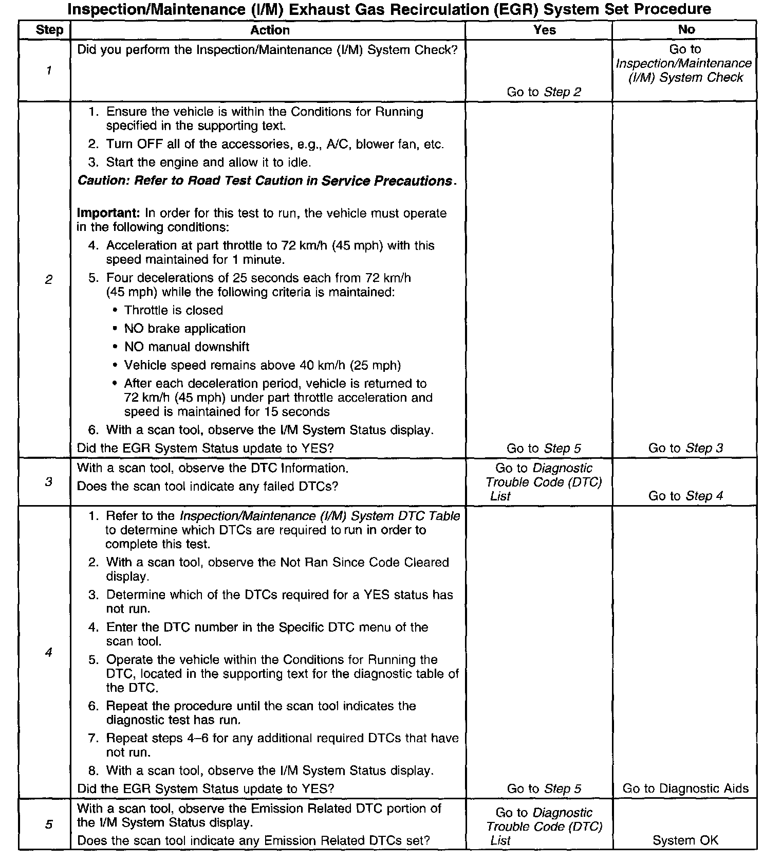 I/M EGR System Set Procedure