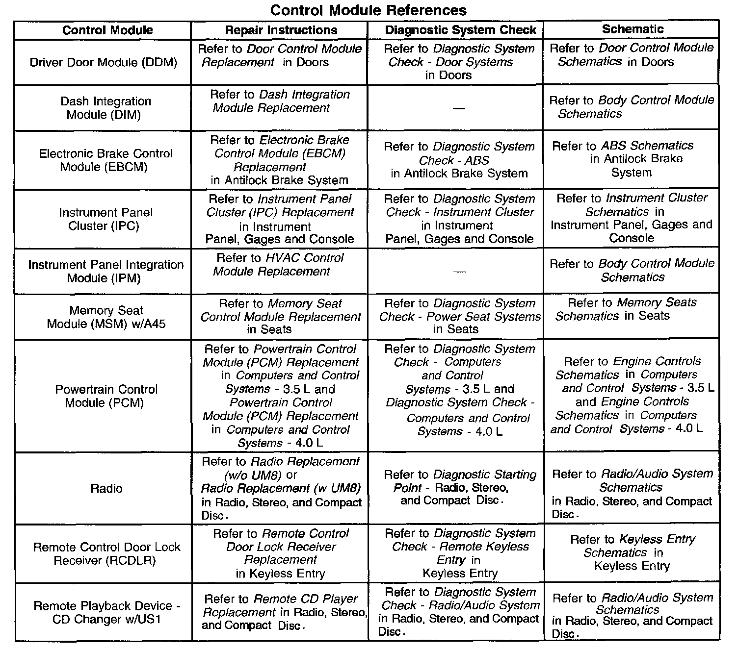 Control Module References