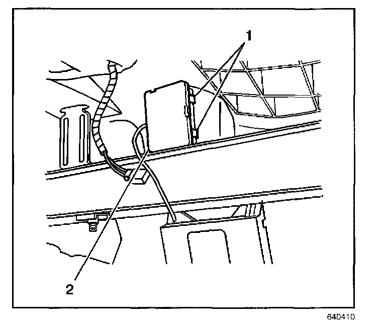 1. Snap the remote control door lock receiver module (2) into the slots in the rear compartment.