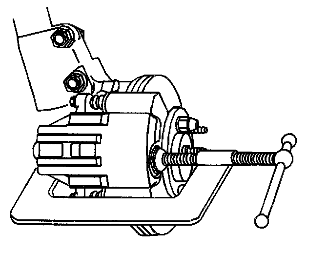 6. Install a large C-clamp over the body of the brake caliper with the C-clamp ends against the rear of the caliper body and against the outer brake pad.
