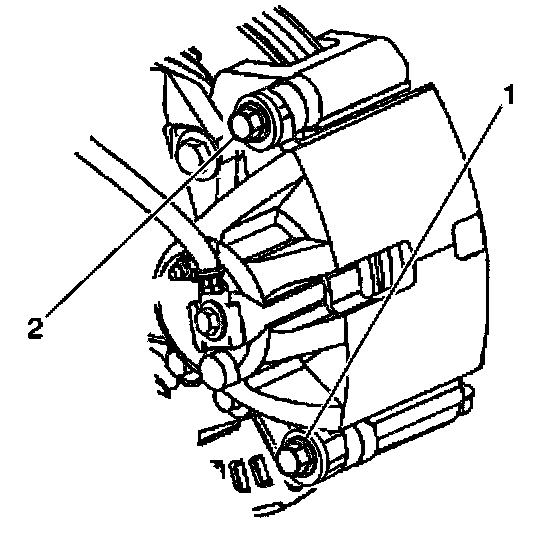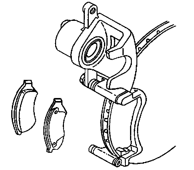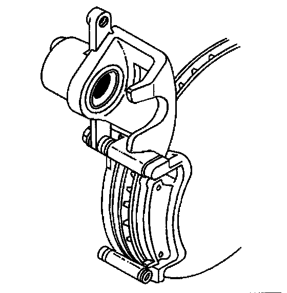 Notice: Support the brake caliper with heavy mechanic's wire, or equivalent, whenever it is separated from it's mount and the hydraulic flexible brake hose is still connected. Failure to support the caliper in this manner will cause the flexible brake hose to bear the weight of the caliper, which may cause damage to the brake hose and in turn may cause a brake fluid leak.