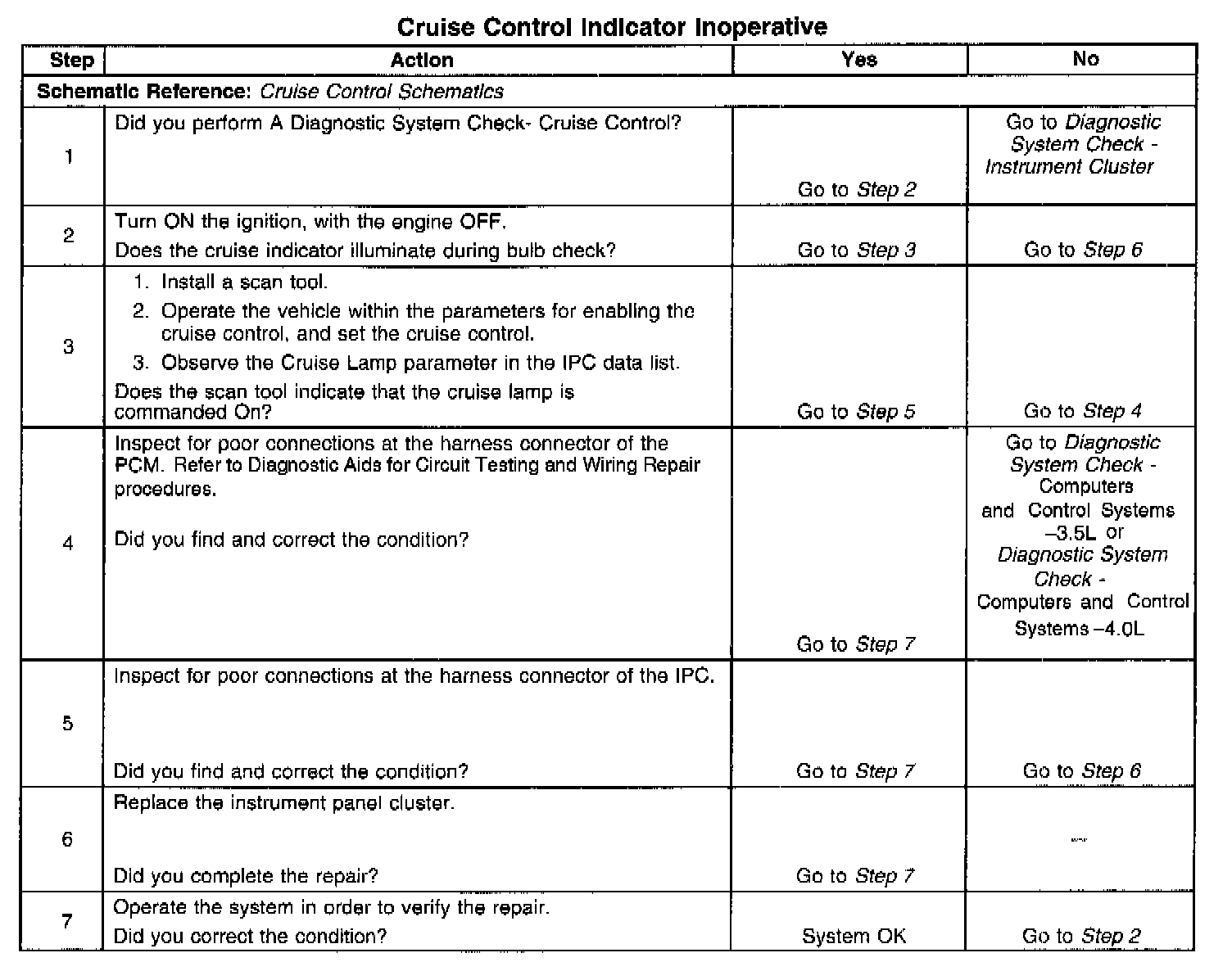 Cruise Control - Indicator Inoperative